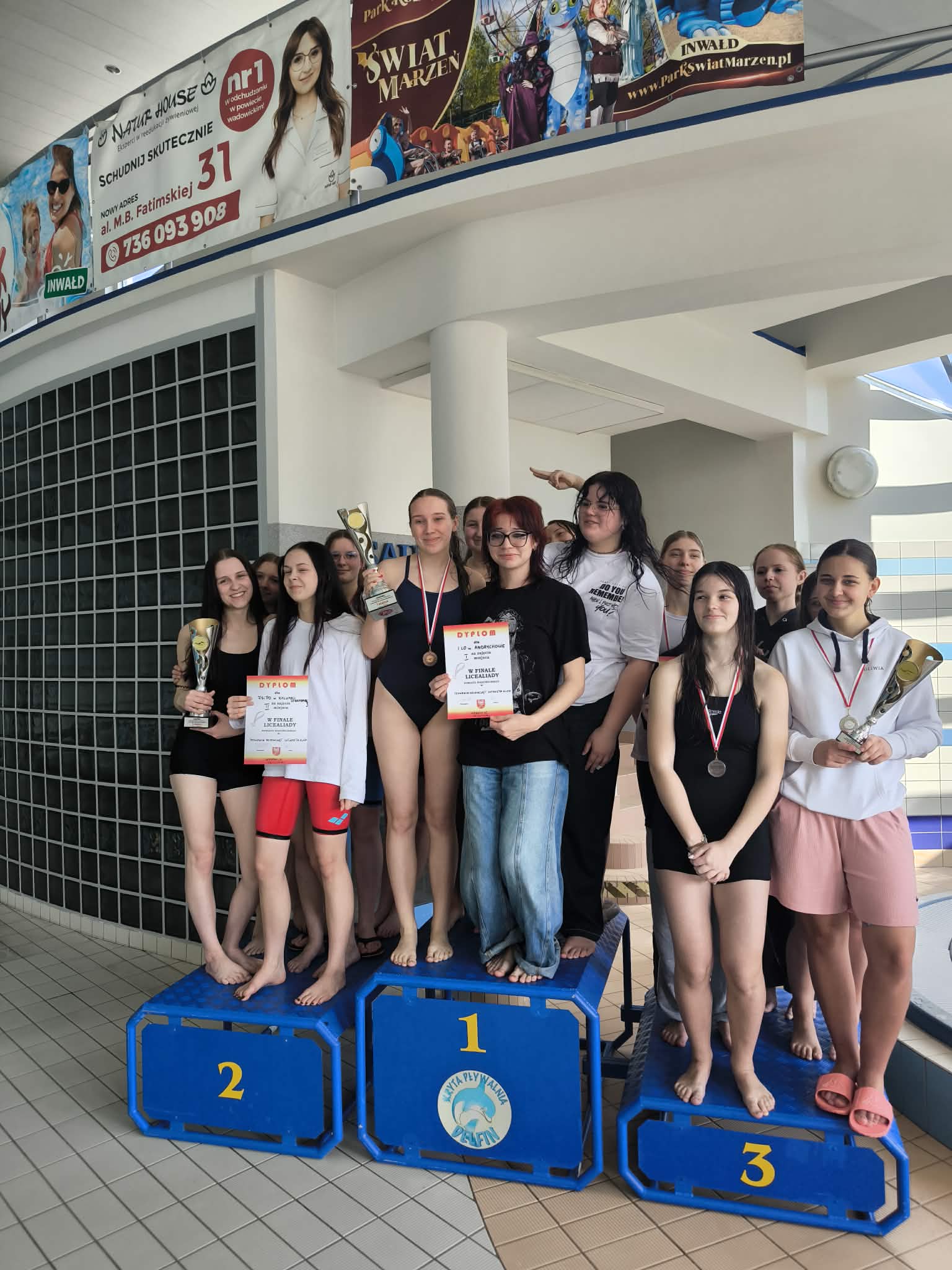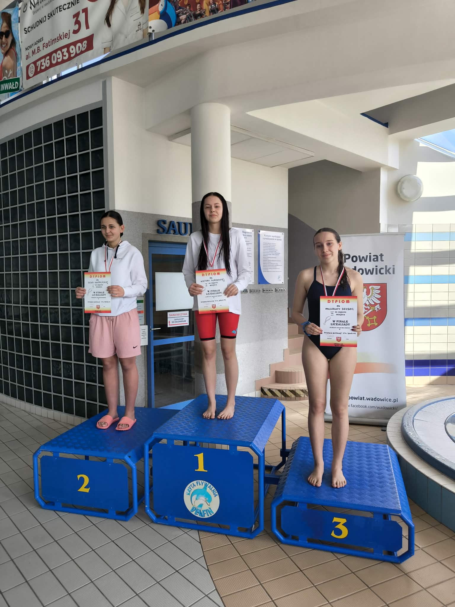 Z dumą informujemy, że reprezentacja dziewcząt zajęła II miejsce w Finale Licealiady Powiatu Wadowickiego w Pływaniu Dziewcząt Sztafeta 6x50. Ale to nie koniec sukcesów: Wiktoria Kurowska z klasy IE zajęła I miejsce w stylu dowolnym a Zuzanna Piwowarczyk z klasy IIC zdobyła I miejsce w stylu grzbietowym w Finale Licealiady Powiatu Wadowickiego. Gratulacje!